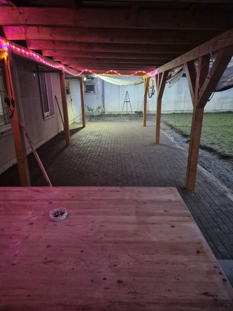 Durch die überdachte Konstruktion und den neuen Boden ist der Bereich ganzjährig ideal nutzbar.