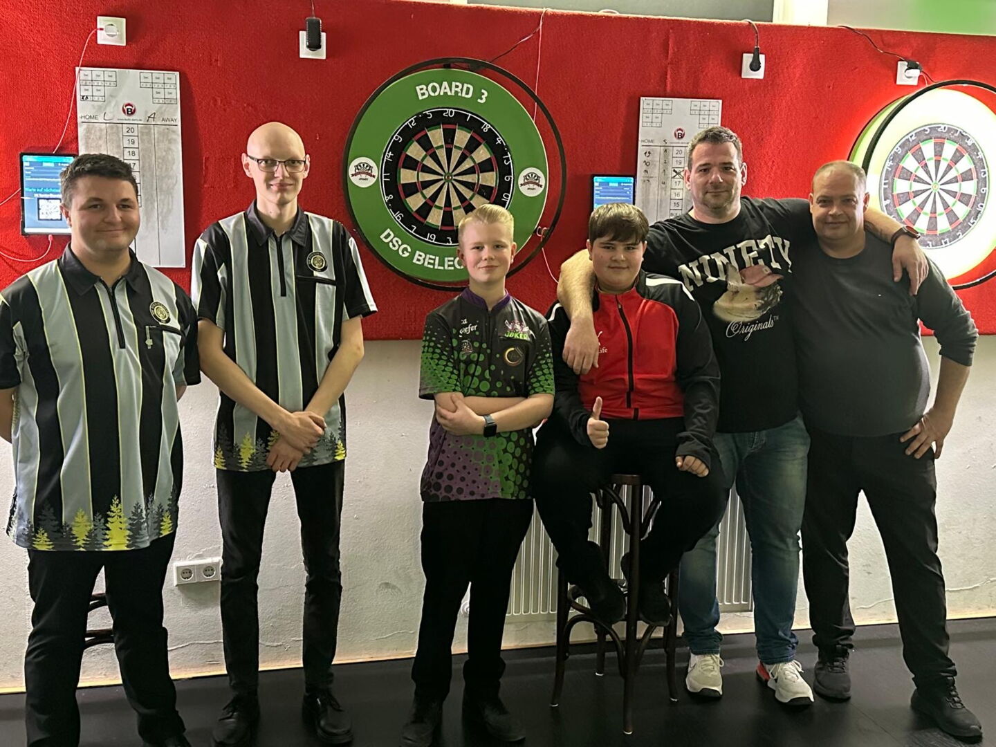 Bei den Herren brannte es, im übertragenen Sinne ... den Turniersieg sicherten sich das Duo Luca Mäckel und Luca Schwefer - beide Jungs sind gerade mal 12 Jahre alt! Zusammen warfen sie insgesamt 12(!), in Worten ZWÖLF Bestleistungen, darunter 5 Shortgames (12,17 & 3 x 18 Darts), zwei herausragende HF (122 & 151) und mal eben so 5 (in Worten FÜNF) 180er ... überragend und völlig verdient wurden die beiden Youngsters, die nebenbei seit vorletzter Woche Jugendlandesmeister (Luca Mäckel) und Jugendvizelandesmeister (Luca Schwefer) des Landes NRW in der Kategorie Jugendliche bis 15 Jahre sind, Turniersieger. Im Finale unterlag das Herren-Duo Schulte/Rode klar mit 4:0. Dritter wurde das Duo Webers/Helfrich, die sich im kleinen Finale mit 4:1 gegen das Team Beiler/Nölleke durchsetzte. Bei den Herren vielen insgesamt 24 Bestleistungen, hatten wir schon erwähnt, dass alleine 12 davon auf das Team Schwefer/Mäckel entfallen - die Jungs, die aktuell für die TSG Belecke an den Start gehen, machen einfach Laune. Die brennen für ihren Sport - und das mit Recht!