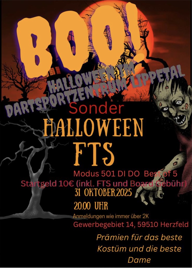 Am 31. Oktober 2025 wird’s im Dartsportzentrum Lippetal richtig gruselig – denn unser beliebtes Halloween-Turniersteht an!