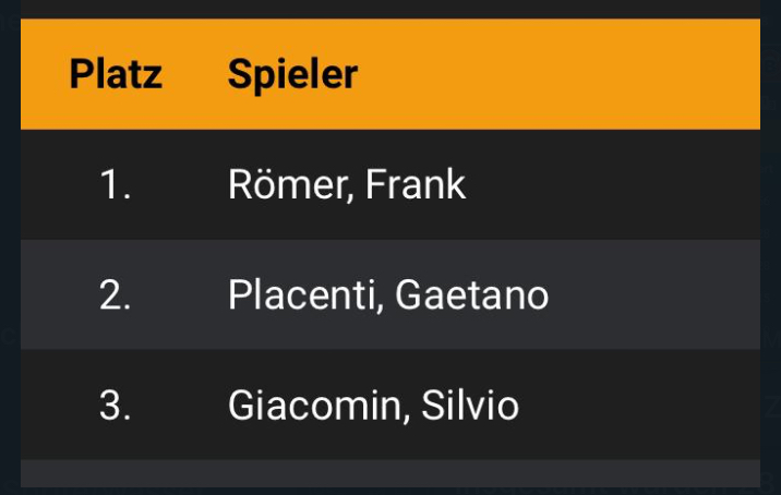 Doch dann drehte Frank Römer aus Ahlen richtig auf und sicherte sich im 2. Match mit einem 3:2 den Turniersieg! Dritter wurde Silvio Giacomin, dem mit 63,1 übers komplette Turnier der höchste Avrg. des Tages gelang! Glückwunsch an dieser Stelle an die drei Platzierten.