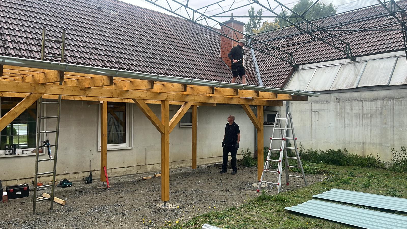 So haben wir zwischenzeitlich den überdachten Raucherbereich in unserem Innenhof fertig gestellt. Hier können sich Raucher- und Nichtraucher ein kurzes Päuschen im Freien gönnen und werden auch bei Schnee und Regen nicht nass. Unser Dank geht hier an einen unserer zwei Hauptsponsoren, die Firma DURACH DACH- und HOLZBAU GmbH aus Langenberg!